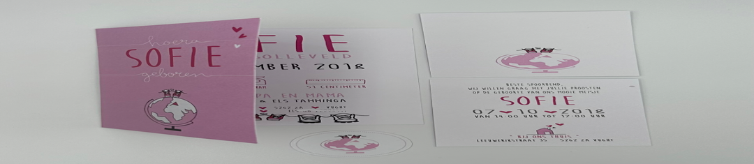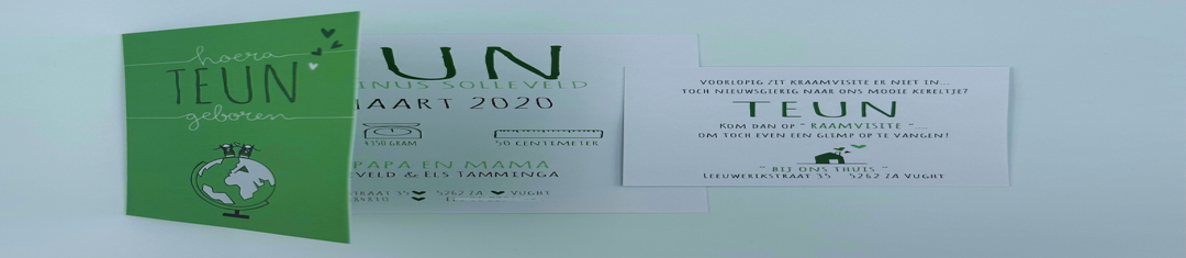 Jullie verwachten een prachtig wereldwondertje. En dat wil je straks na deze ‘broedtijd’ aan de hele wereld laten weten. Mét het allermooiste geboortekaartje. Ik help jullie graag en ontwerp een uniek custom-made kaartje. We bespreken jullie wensen & ik vertel alle mogelijkheden in een persoonlijk gesprek. Dan volgt een voorlopige prijsopgave en bij akkoord ga ik aan de slag. Van envelop tot geboortevlag: er is van alles mogelijk! Willen jullie meer informatie of in contact komen? Stuur mij dan via onderstaand formulier een berichtje. En ik neem snel contact met jullie op.