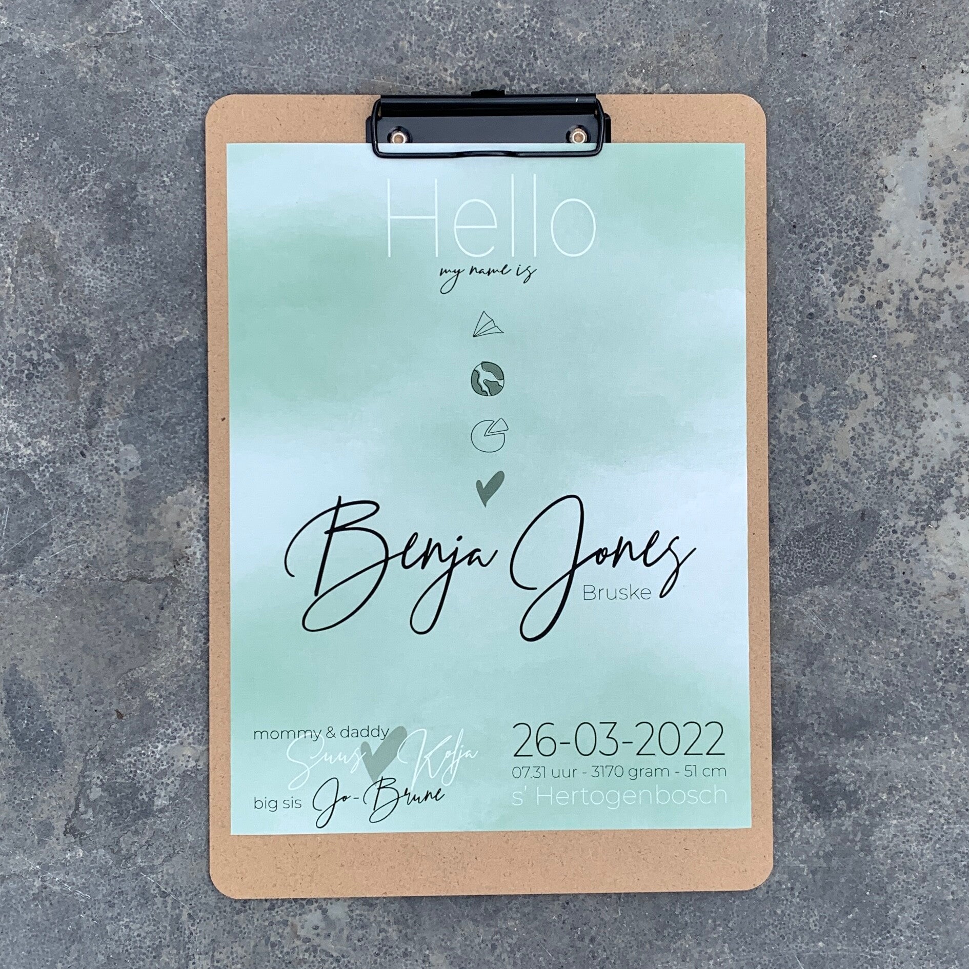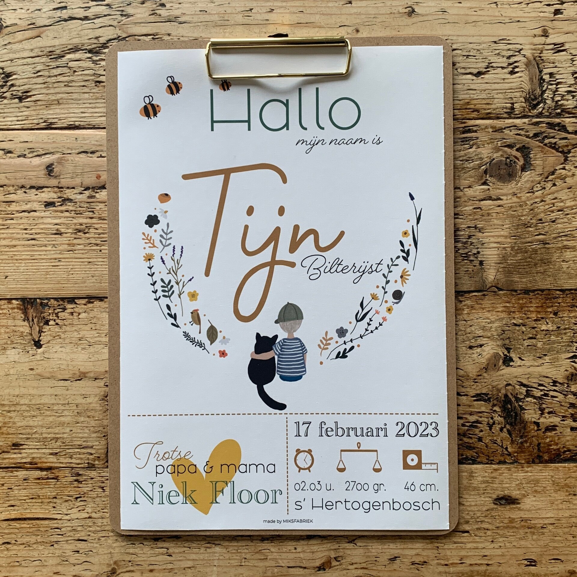 Laat een custom-made geboorteposter maken, helemaal in stijl van het geboortekaartje. Een uniek kraamcadeau!