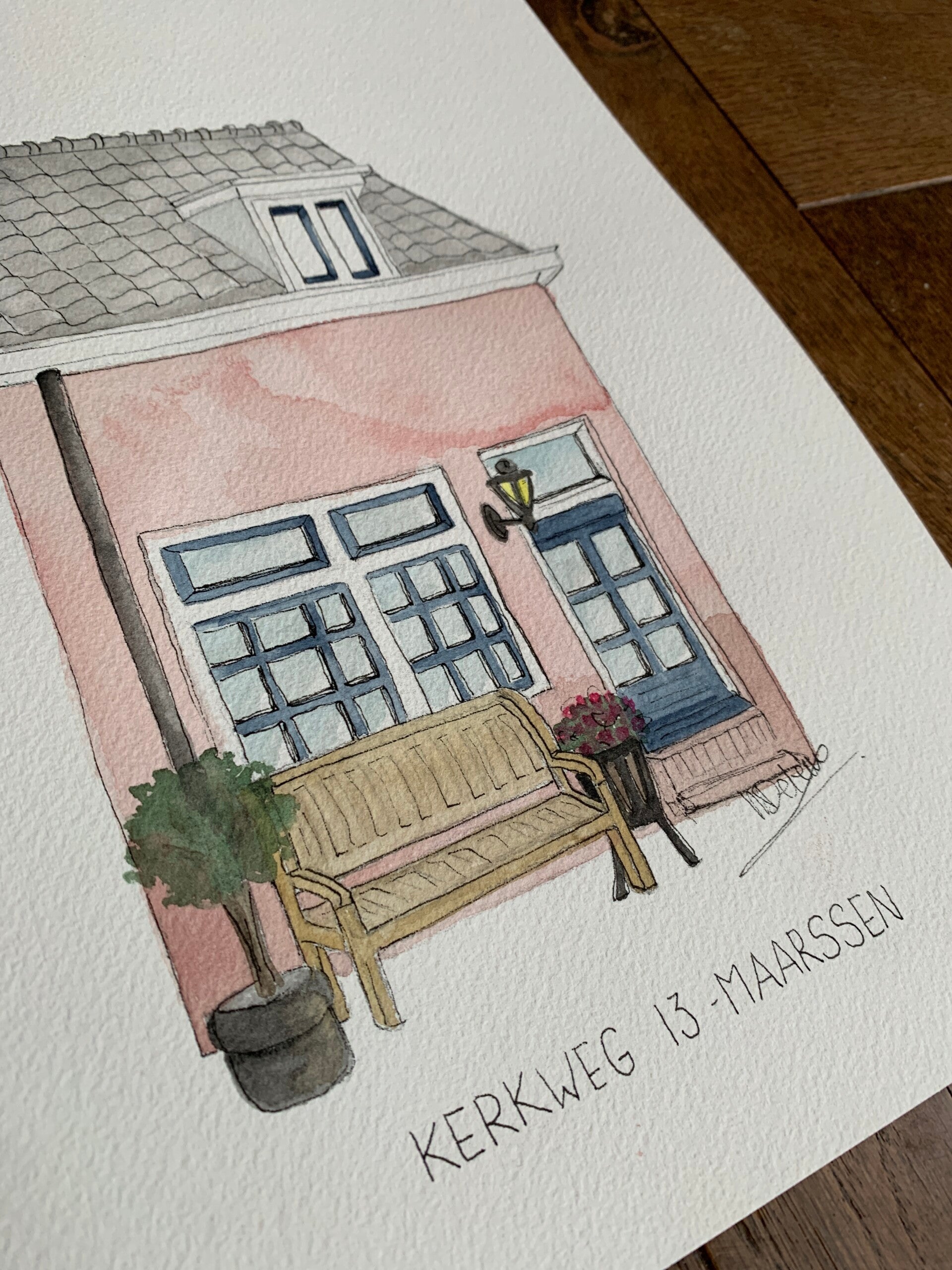 Jouw favoriete plekje geillustreerd op prachtig 300 grams aquarel papier. Door het gebruik van aquarel verf & pen krijg je een mooi subtiel schilderij.