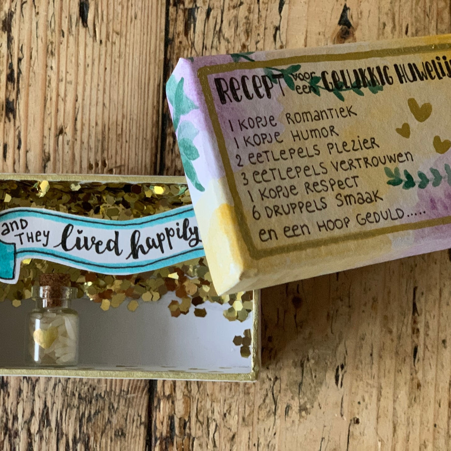 Origineel miniatuur doosje vol liefde voor het bruidpaar!
