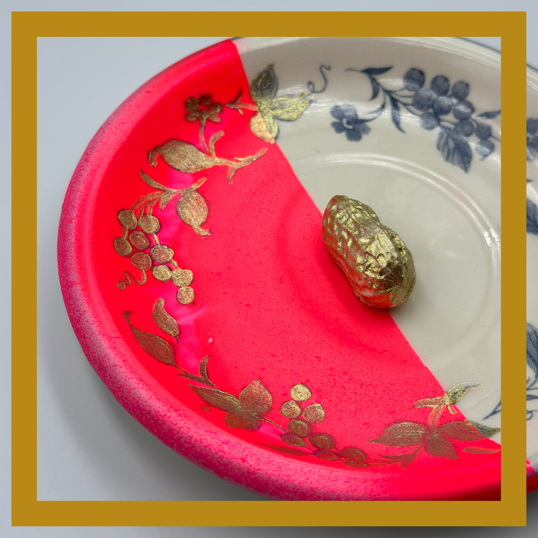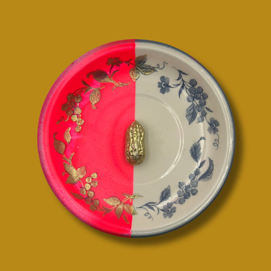 Uniek Vintage bordje met een GOUDEN PINDA!