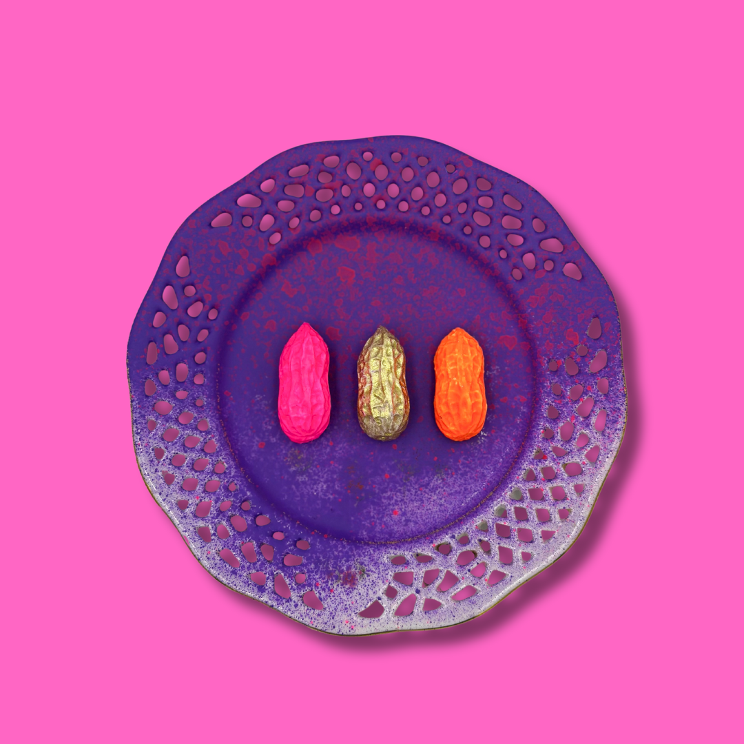 Hoe grappig deze "Family Peanuts" op dit prachtig vintage bordje met opgewerkte rand. Ik heb hem bewerkt met paars en speelse pink spetters. Echt FUNKY als je het mij vraagt;)