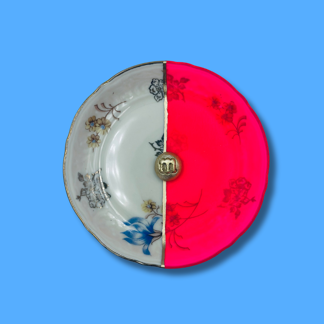 Uniek Vintage bordje met een GOUDEN mini M&M!