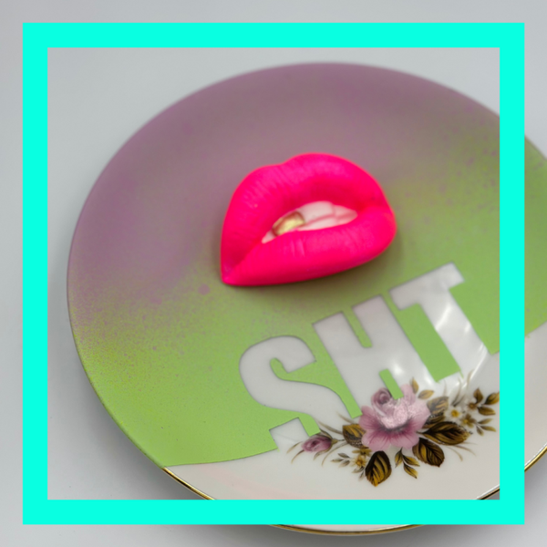 Prachtig SH*T mint/lia verloop bordje met een neon Pink HOTlips. ( met een leuk gouden tandje detal;)