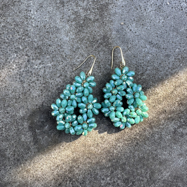 Prachtige oorbel hanger. Met turquoise kralen geregen als bloem geplaatst in een druppel vorm.