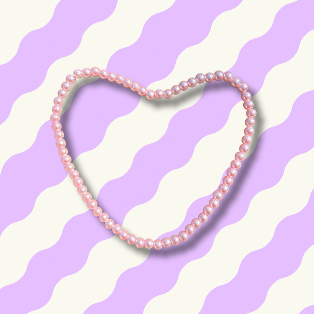Het is een parelketting geregen op elastiek. Dus makkelijk over het hoofd te doen. Prachtige pastel kleurige glasparels.